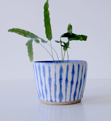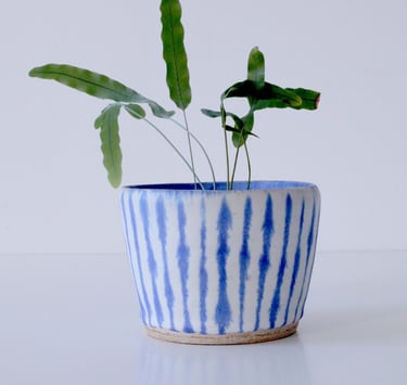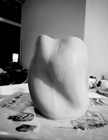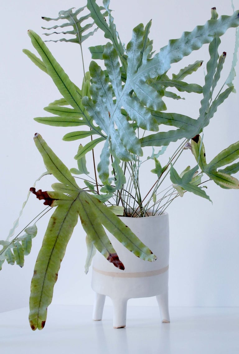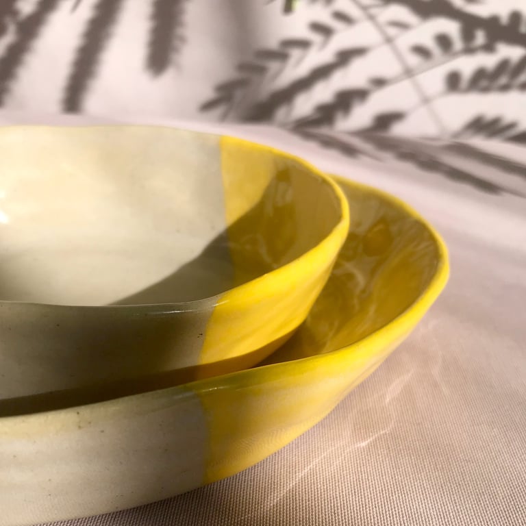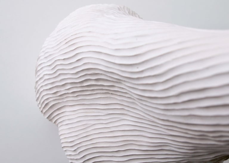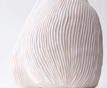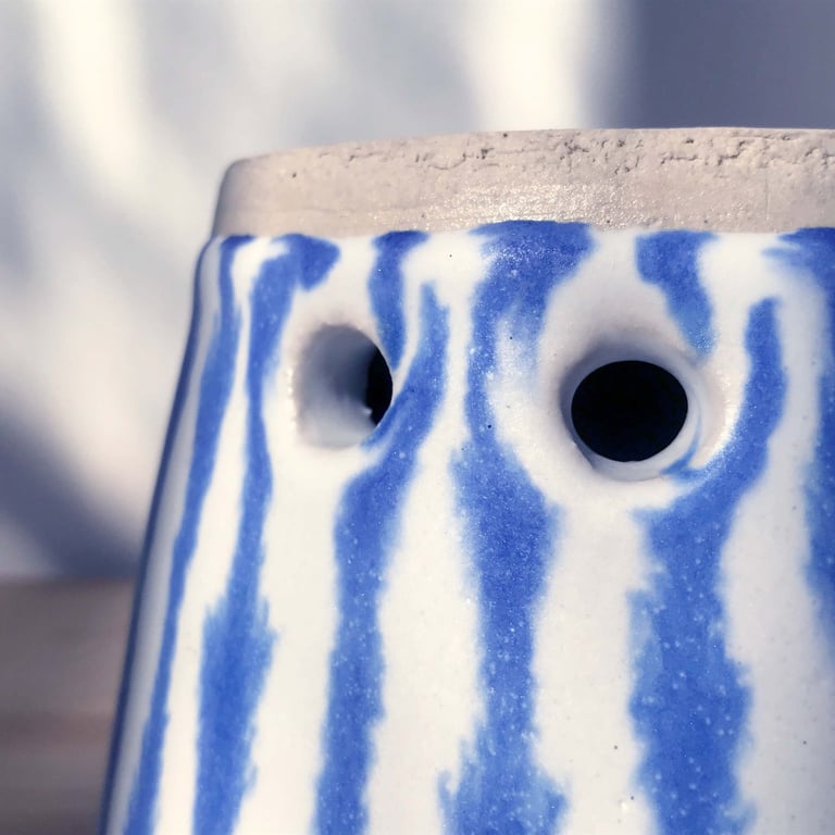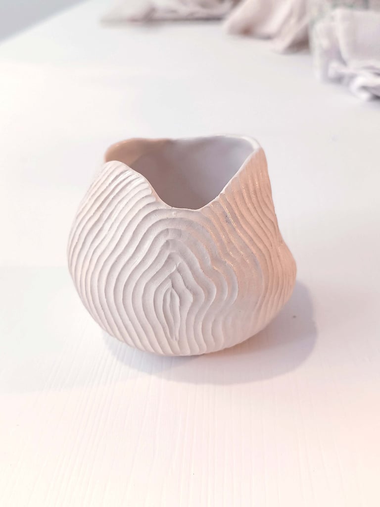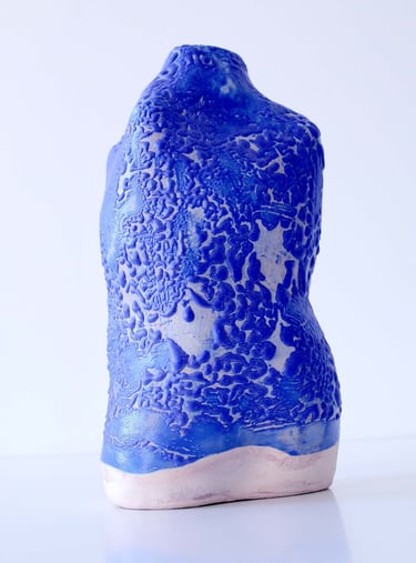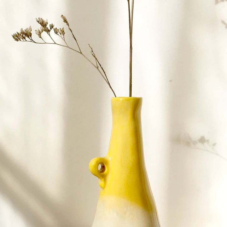 Vases aux dimensions variables, mêlant terre brute et émaux mats.