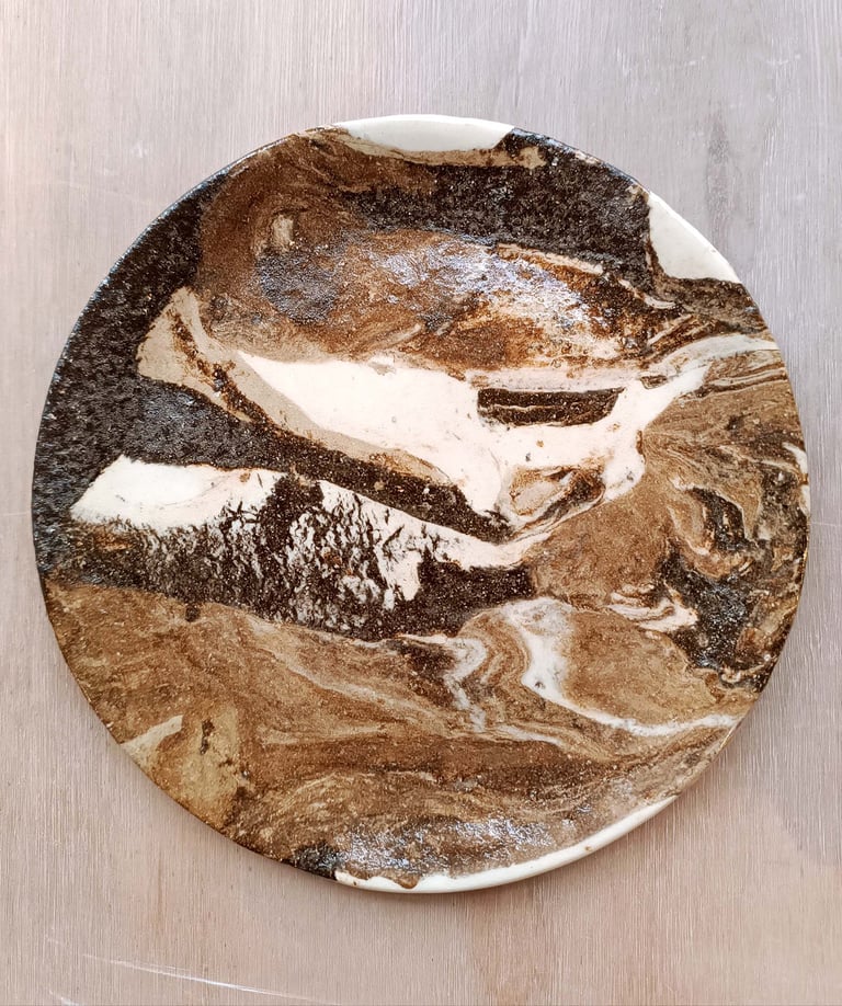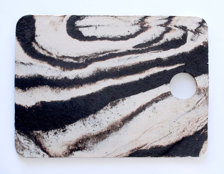 Plats à mezzes en grès noir et beige de St Amand. 35x 25 cm